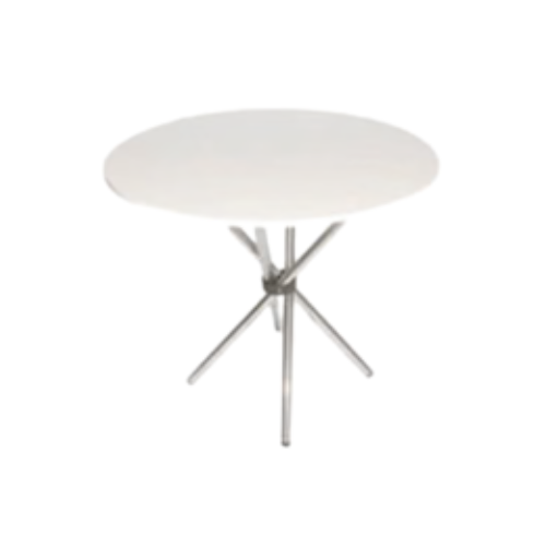 White round café table on chrome chopstix legs